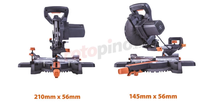 - Capacidad máxima de corte a 45° (en ángulo): 145×56 mm