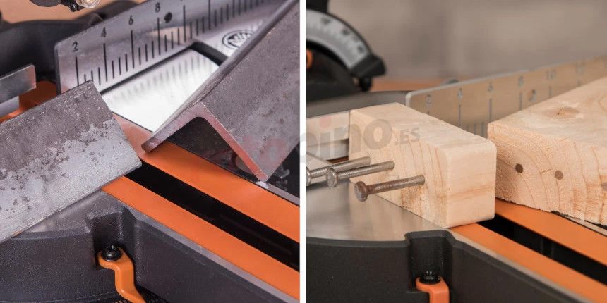 - Capacidad máxima de corte a 45° (en ángulo) / 45° (en ángulo): 210×38 mm